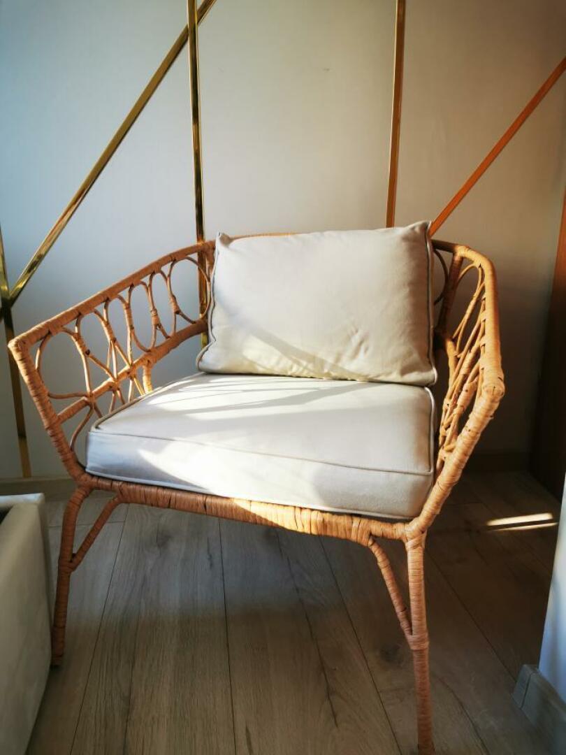 Grajewo ogłoszenia: Stylowy fotel wypoczynkowy z rattanu z białą poduszką. Mebel...